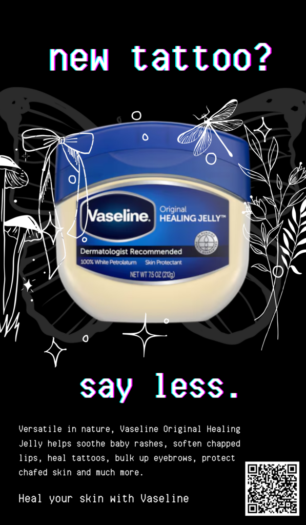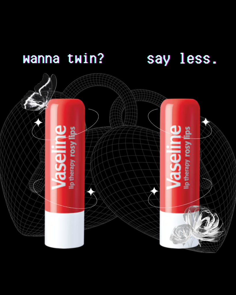 | Caption: Give moisture and love to your skin with Vaseline Healing Jelly. Tag someone you love – or someone who needs this đź¤đź’™đź©µ ——— Go to vaseline.com for more products! #loveu #selflove #vaseline #healingjelly #sayless | Caption: Feel demure and kissable with Vaseline Lip Therapy tins. Tag someone who needs this- or someone you wanna kiss 🫣💕💋 ——— Go to vaseline.com for more products! #wannakiss #whosaidthat #vaseline #rosylips #sayless | Caption: Take care of your beloved new tattoo with Vaseline Healing Jelly. Tag someone who you wanna get tattoos with 🖤🩶🤍 ——— Go to vaseline.com for more products! #tattoos #inked #vaseline #healingjelly #sayless | Caption: Nothing can express the feeling of understanding a friend with a few words. Tag your bestie- or someone you wanna be besties with 💖👯✨ ——— Go to vaseline.com for more products! #twins #vaseline # ifykyk #rosylips #sayless |